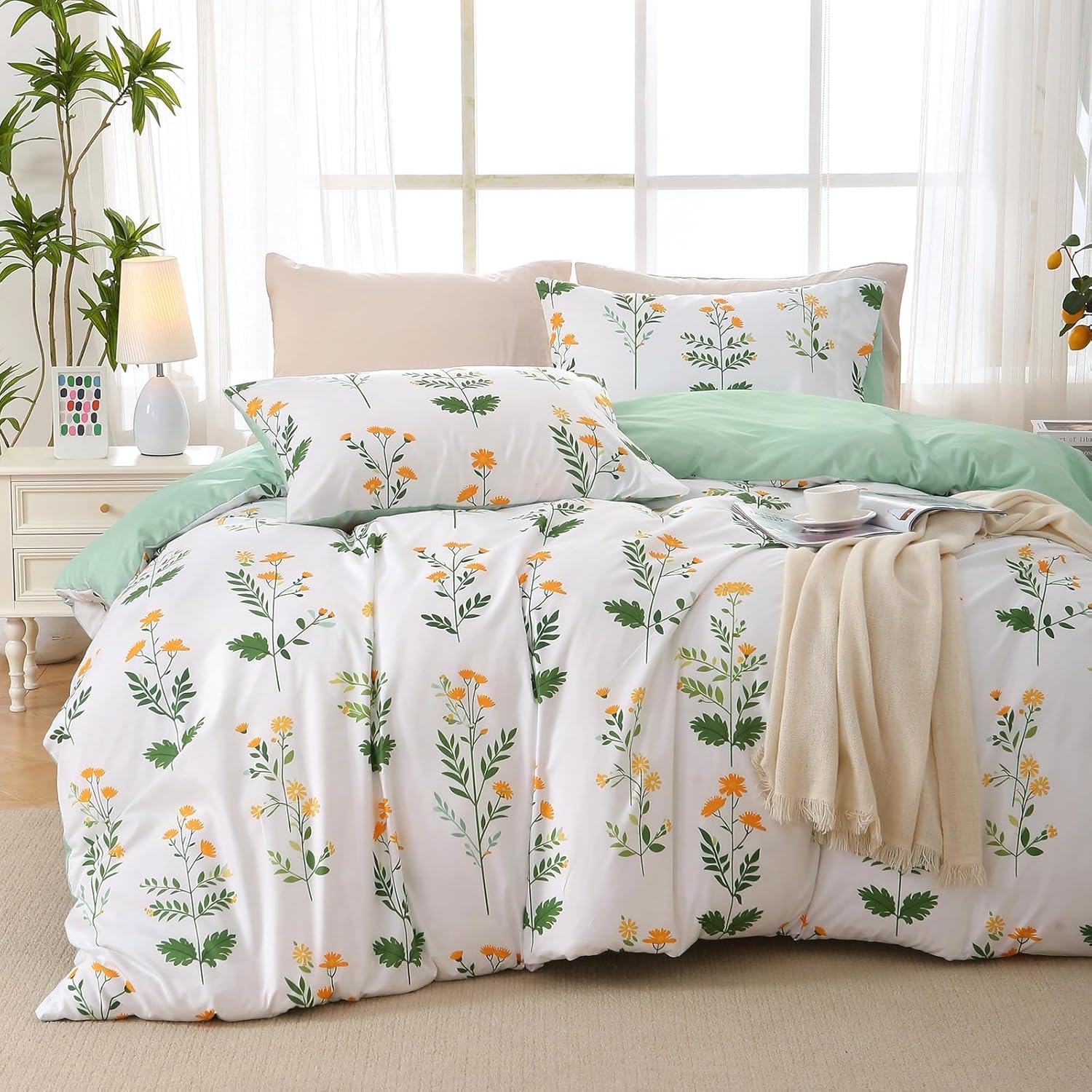 - Unique Design: With a beautiful botanical floral and leaves pattern print, this reversible duvet cover adds a vibrant and modern touch to your room. It brings a bresth of fresh air and the natural beauty of all seasons to your bedroom decor